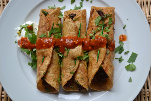 Roll up and deep fry for 2-3 minutes. Since my deep fryer holds a perfect temperature, my food is crisp, not greasy - so I add 1 teaspoon of oil absorption for the 3 taquitos.