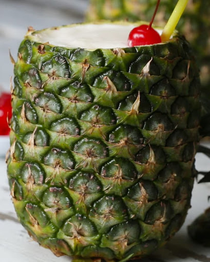 3. In a blender, add the frozen pineapple, coconut cream, coconut milk, white rum, ice, and lime juice.
