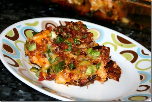 In a bowl mix together the cheese, bacon & green onion and top the raw chicken with the cheese mix. Return the casserole to the oven and bake for 15 minutes or until the chicken is cooked through and the topping is bubbly delicious.