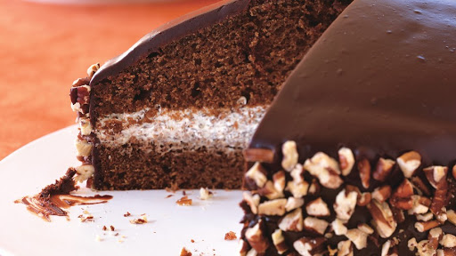 Pour glaze over cake allowing glaze to drip down sides. Use spatula to spread glaze over sides. Chill 1 hour to set glaze.