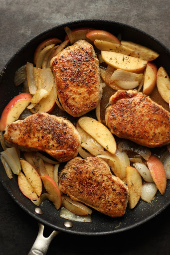 Remove chops; keep warm. Add apples, pecans, brown sugar mixture and remaining butter to pan; cook and stir until apples are tender. Serve with chops. Yield: 4 servings.