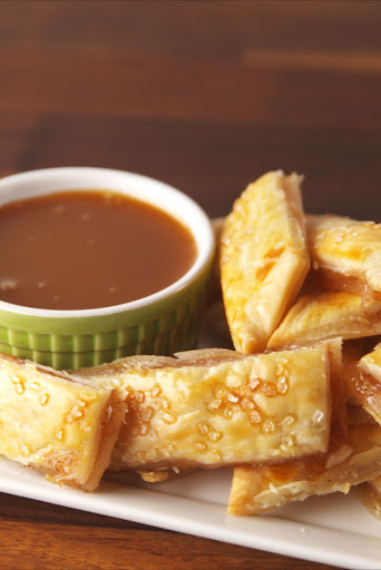Bake for 20 minutes, until crust is golden. Serve with caramel for dipping.