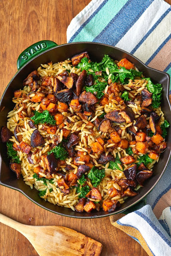 For omnivores: If desired, render a little bacon, sausage, or guanciale fat in the beginning, and use this to cook the vegetables. Keep the meat in too.