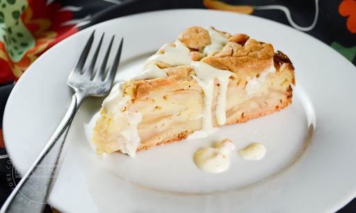 Bake for about 1 hour, or until the center is set and the top is golden. Serve warm or chilled, topped with vanilla sauce.