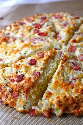 Add milk and mix just until incorporated. Fold in cheese, ham and onion. Turn dough out onto a floured surface. Knead gently for several minutes.