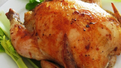 "My grandmother's recipe for roasted chicken. We are German and she used to do it this way all the time. I never have had a chicken this juicy before; this little trick works and makes the people eating it go silent. It's funny. We nibble on the celery after."