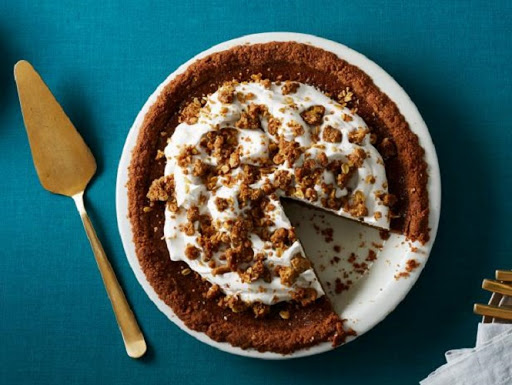 Pumpkin Pie with Bourbon Maple Whipped Cream and Cinnamon Crunch