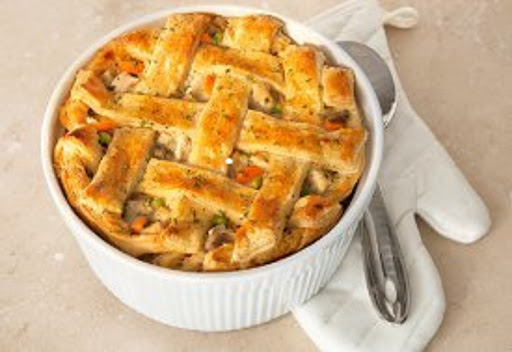 Spoon the chicken mixture into the casserole. Weave a lattice pattern over the filling with the pastry strips. Trim any excess pastry. Sprinkle with the remaining parsley. Place the casserole onto a baking sheet.