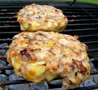1) Mix all the ingredients together except the salt. Form into 4 patties.