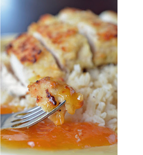 COCONUT CHICKEN WITH APRICOT SAUCE