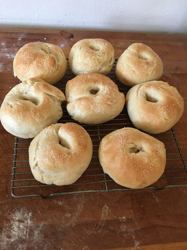 • Caraway seeds, coarse salt, minced fresh garlic, minced fresh onion, poppy seeds, or sesame seeds. (Everyone in my house prefers plain bagels, but I have no preference, so I just went with the plain, so no one could complain.)
