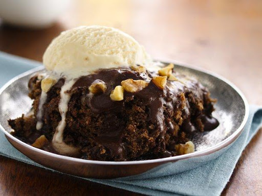 Bake about 40 minutes or until top is dry. Cool 10 minutes. Spoon warm cake into dessert dishes. Spoon sauce from pan onto each serving. Top with ice cream; sprinkle with nuts.