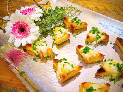 Scallop, Gruyere & Macadamia Nut Toast Points