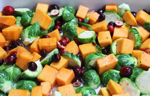 Maple Roasted Butternut Squash, Brussel Sprouts & Cranberries