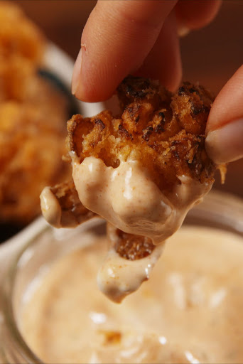 Make the dipping sauce: In a medium bowl, whisk together mayo, ketchup, horseradish, paprika, garlic powder and oregano. Season with salt and serve.