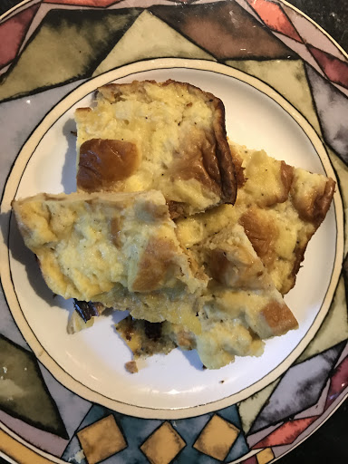 This is an easy breakfast casserole that is delicious. I particularly like the flavor of the Hawaiian bread contrasted by the salty bacon and cheese. It is even good cold and transports well so would make a great breakfast picnic food or to go breakfast. Excellent potluck option.
