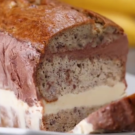 Place the top of the banana bread on top and cover with the plastic wrap.