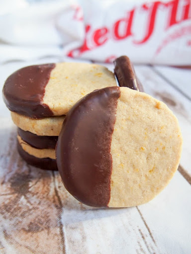 Once cookies are completely cool, melt the chocolate in a small bowl (either over boiling water or in microwave in 30 second bursts, stirring in between). Dip the cookies into the chocolate one at a time, approximately a third to half the way in. Let excess chocolate drip off then lay on a cookie sheet or parchment to set. Repeat until all are coated, re-melting the chocolate as needed.
