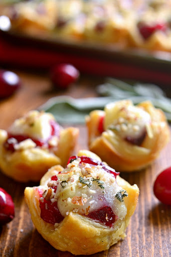 Fill the center of each puff pastry cup with 1 piece of chicken, 1/2 tsp cranberry sauce, and 1 piece brie cheese.