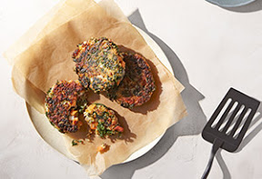 Mixes antioxidant-rich sweet potatoes and vitamin-packed kale with quinoa (a powerhouse grain) to form satisfyingly crispy patties.