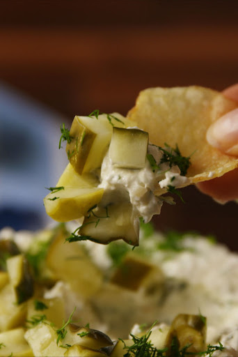 In a large bowl combine cream cheese, pickles, sour cream, and pickle juice. Using a hand mixer, mix until smooth and fully combined. Fold in parmesan, dill, and spices. Season with salt and pepper and serve.
