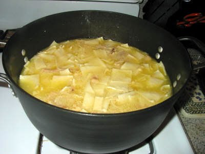 7. Add the dumplings to the boiling broth a few at a time to keep the broth at a boil.