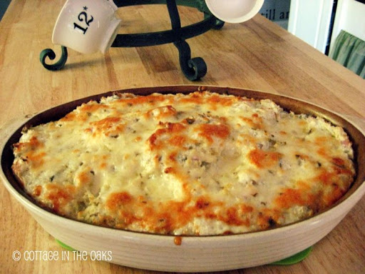 Layer 2 - Spread 1/2 milk mixture over potatoes.