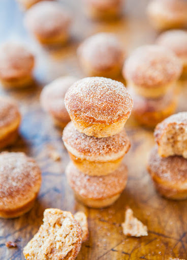 Optionally, the entire muffin could be buttered and coated similar to traditional cinnamon-sugar donut holes, and in doing so, you’d need to melt more butter and use more cinnamon-sugar.