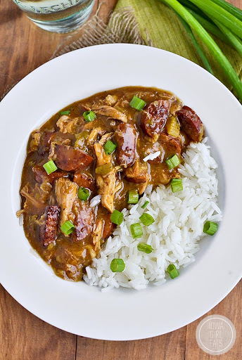 Remove chicken, skin and bones and set aside to cool. Add the sausage to the pot and simmer another 30 minutes. Add the green onion and cook another 10 minutes. Shred or chop the chicken and return to the pot, discarding the skin and bones and let simmer until chicken is warmed through. Taste and adjust seasonings.