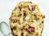 Butter a shallow casserole dish. Add half of the pasta, top with some of the ham and cover with the remaining pasta. Top with the remaining ham, then cover with the bread mixture. Bake until golden and bubbly, about 20 minutes. Let rest a few minutes before serving.