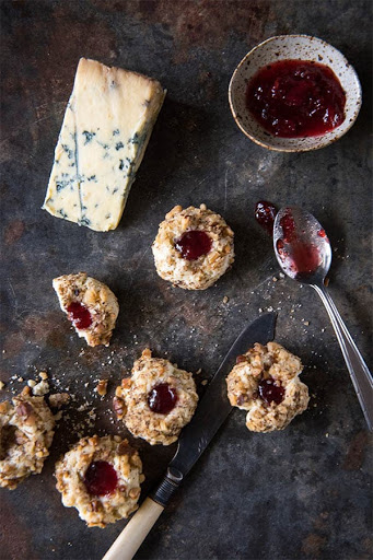 Once cookies have cooled for at least 10 minutes, use a small spoon to fill each divot with about ½ teaspoon jam. Set cookies aside until jam is set (about 1 hour).