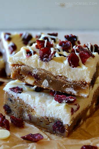 Sprinkle on the cranberries evenly over the frosting. Then, drizzle on the remaining melted white chocolate with a spoon.