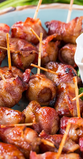 Marinate water chestnuts overnight in marinade. Wrap bacon around water chestnuts and secure with toothpick. Roll in brown sugar. Place on baking sheet. Bake at 375 until browned.