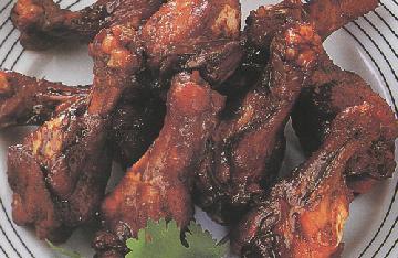 Remove the chicken from the oven, brush again with sauce and sprinkle with the chopped green onions and serve. Serve remaining sauce in small bowls on the side for dipping.