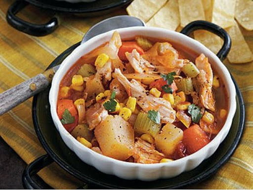 Remove chicken from slow cooker; shred with 2 forks. Return chicken to slow cooker. Stir tortilla strips into stew. Garnish with parsley, if desired.