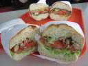 To assemble the sandwiches, halve the rolls horizontally. Pull out the soft center of the slices and discard. Spread each roll evenly with the chipotle mayonnaise. Put the cutlets on the bottom halves of the rolls and top with lettuce, tomato, avocado, onion and jalapeno. Arrange the sandwiches on serving plates and garnish with lime wedges.