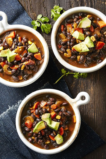 Transfer contents of skillet to 6- to 8-quart slow-cooker bowl along with beans, corn and remaining broth. Cover and cook on High for 4 hours or Low for 6 hours. Serve with avocado and cilantro.