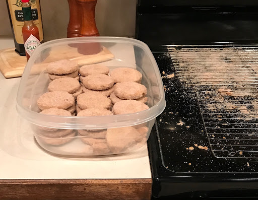 Roll the dough out till it is a little less the 1/4-inch thick. Cut with round cookie cutter.