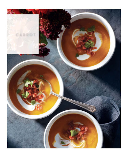MOROCCAN CARROT SOUP WITH HARISSA RELISH AND YOGURT