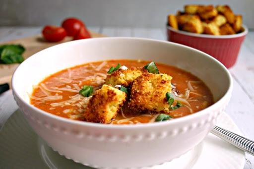 Tomato Soup with Parmesan Croutons