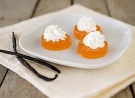 Pour 1 cup boiling water over the orange gelatin. Let gelatin dissolve completely.