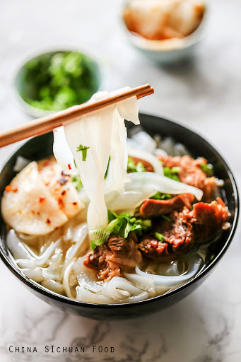 Beef ho fun noodle--a comforting rice noodle soup with spice braised beef