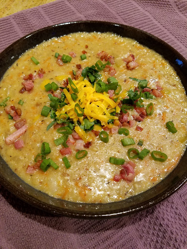Taste the soup right before serving and add more salt if it’s bland. Serve with bacon bits, cheese and parsley!