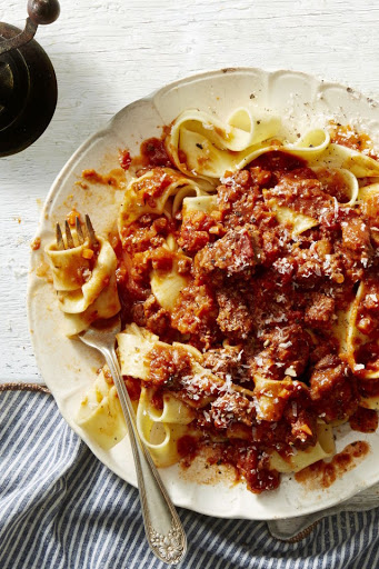 Uncover cooker, discard bay leaves and stir in basil. Serve tossed with pasta, garnished with Parmesan.
