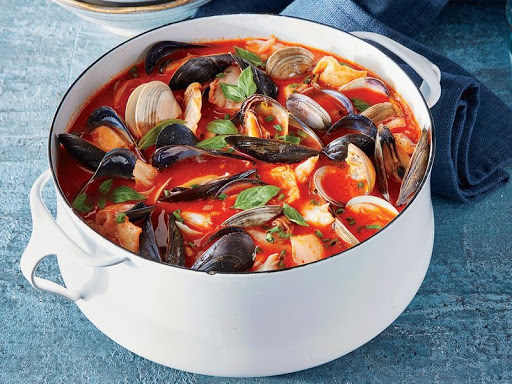 Gochujang, a Korean fermented chile paste, not only brings heat and texture (it contains soybeans and glutinous rice) to this classic San Francisco fish stew, but an added layer of flavor. The tang and smell of kimchi and fish sauce also plays nicely against the assortment of fresh shellfish.