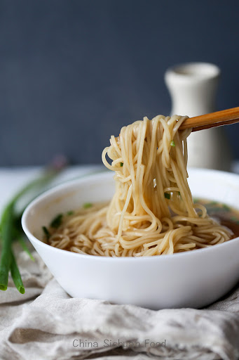 Yang Chun Noodle is a humble and yummy soup noodle seasoned with soy sauce, green onion, chicken broth and lard (or sesame oil).