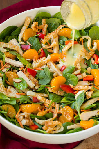 Mandarin Orange Spinach Salad with Chicken and Lemon Honey Ginger Dressing