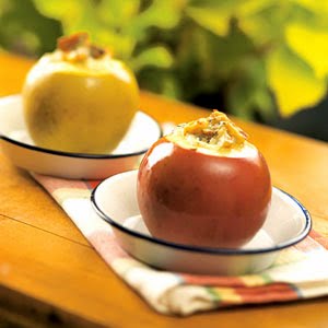 Nutrition Facts per serving of Brie-and-Hazelnut-Stuffed Apples: 224 cal., 13 g fat (5 g sat. fat), 28 mg chol., 25 g carbo., 4 g dietary fiber, 4 g pro.
