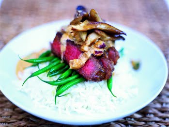 5. Heat through and season to taste. Slice each steak thinly and spoon over the sauce. Delicious served with rice and green beans.