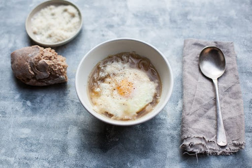 About 5 minutes before soup is ready, sprinkle half of the cheese over the top of the soup, crack the eggs into the pot and cover with the rest of the cheese and cover, without stirring. The whites should be cooked and the yolks runny—about 5 minutes. Serve the soup with an egg in each bowl along with the bread. If desired, sprinkle over extra Parmesan, a grating of black pepper and a drizzle of olive oil.